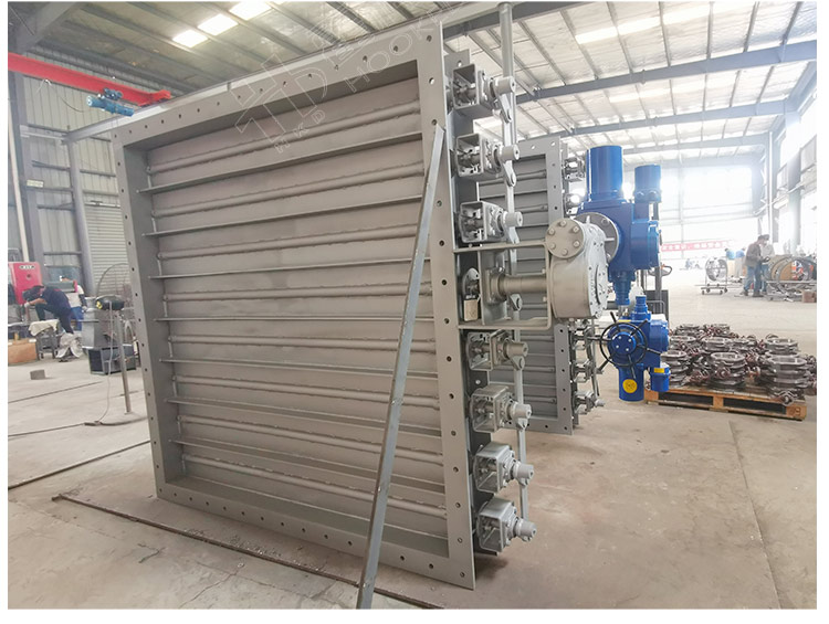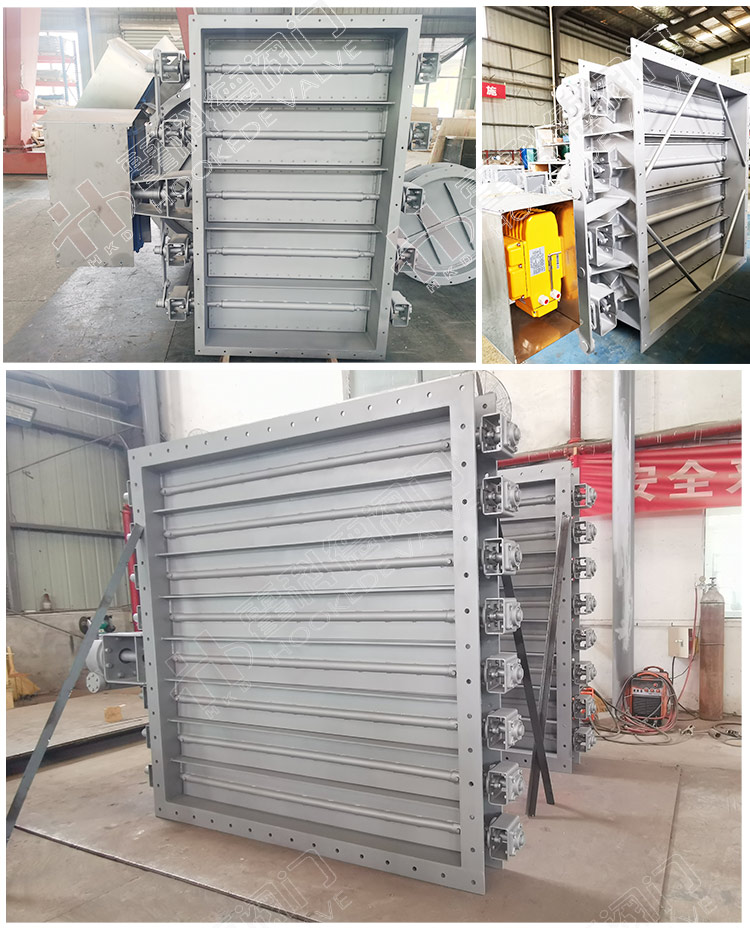 霍科德閥門生產(chǎn)的百葉閥由閥體、百葉板、閥軸、連桿機構(gòu)、驅(qū)動裝置等主要部件組成。閥門主體為焊接結(jié)構(gòu),門板是由幾個繞各自旋轉(zhuǎn)軸動作的百葉板組成,軸端采用柔性石墨編織填料密封,具有耐高溫、自潤滑等特點。閥門工作原理是驅(qū)動裝置輸出力矩通過連桿機構(gòu)傳給各閥軸,由各閥軸的轉(zhuǎn)動帶動各自的百葉板旋轉(zhuǎn),從而改變管道內(nèi)截面積,以達(dá)到大面積截斷介質(zhì)、降低介質(zhì)壓力或調(diào)節(jié)介質(zhì)流量的作用,調(diào)節(jié)角度為0°-90°。該產(chǎn)品主要適用于冶金、礦山、水泥、化工、發(fā)電等行業(yè)的通風(fēng)除塵及環(huán)境保護(hù),特別適用于大口徑,大流量低壓差場合(如風(fēng)機進(jìn)出口處)。具有重量輕、流阻小、結(jié)構(gòu)簡單、啟閉靈活、使用壽命長、操作維護(hù)方便等特點。